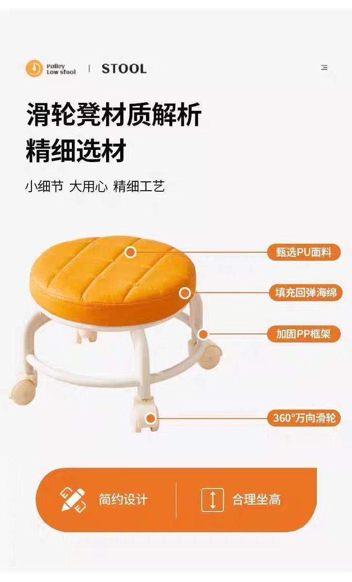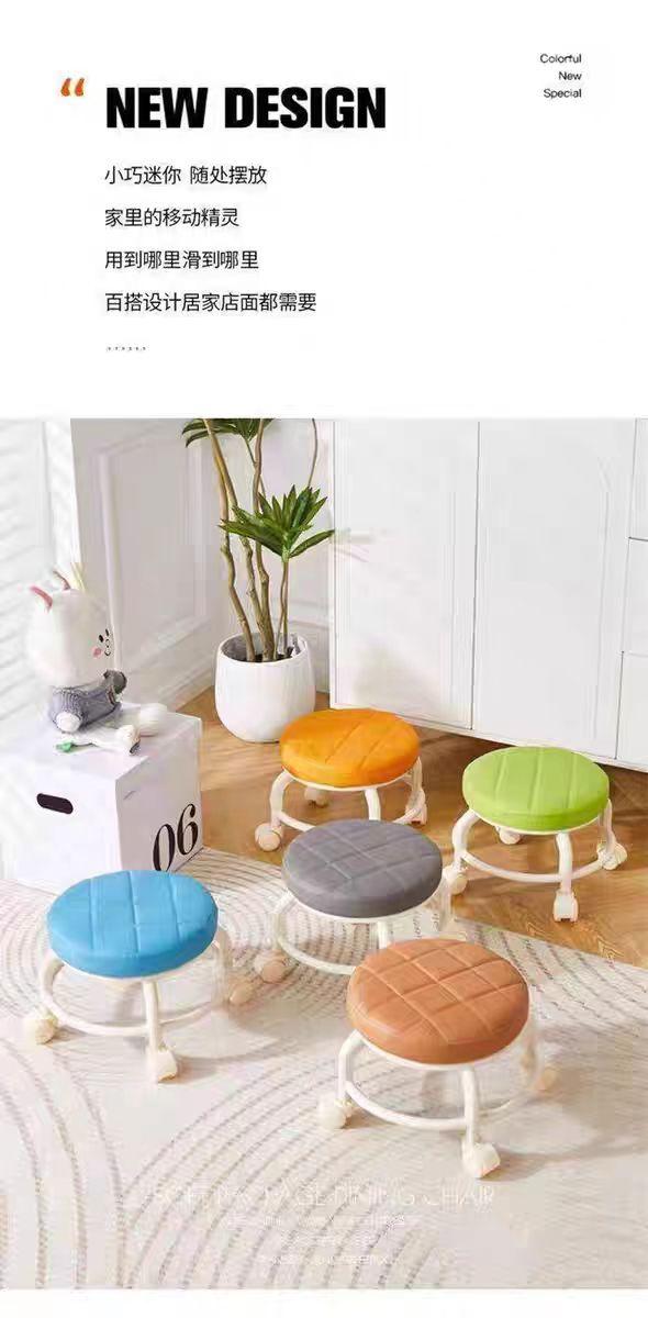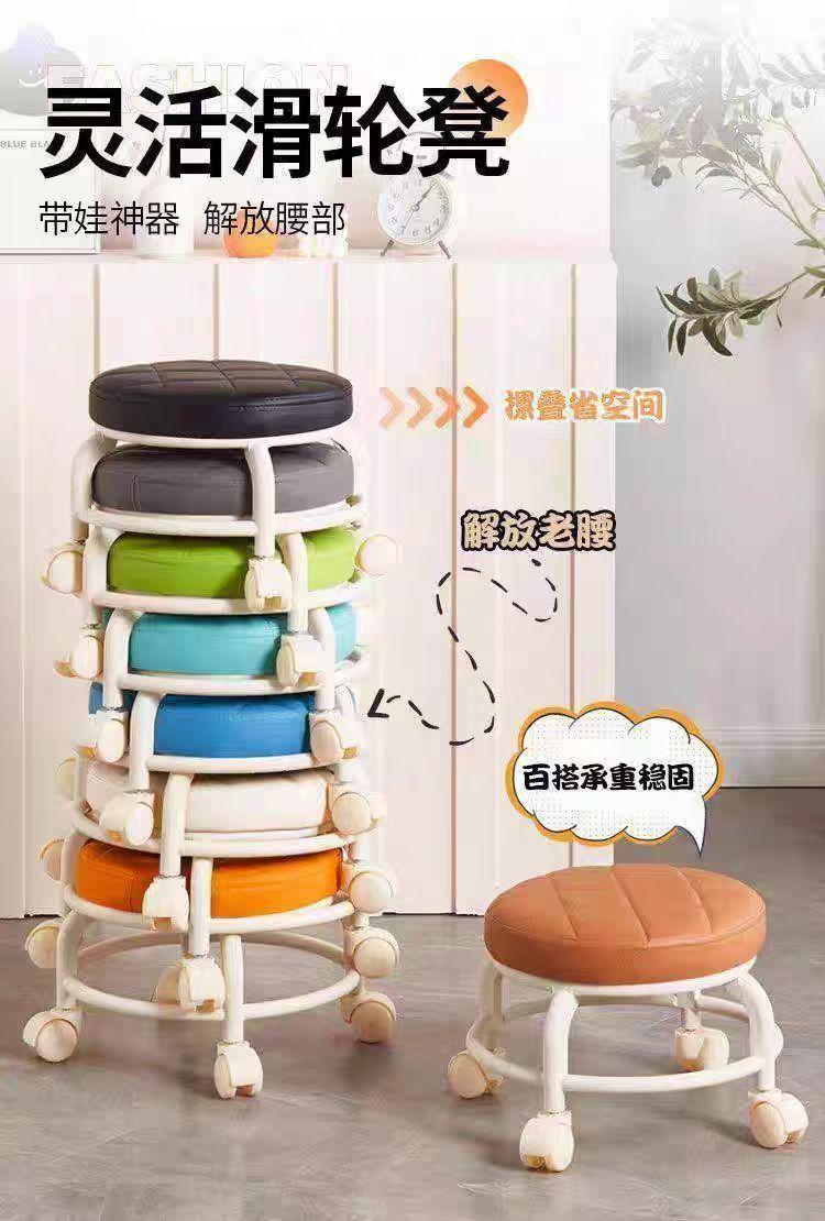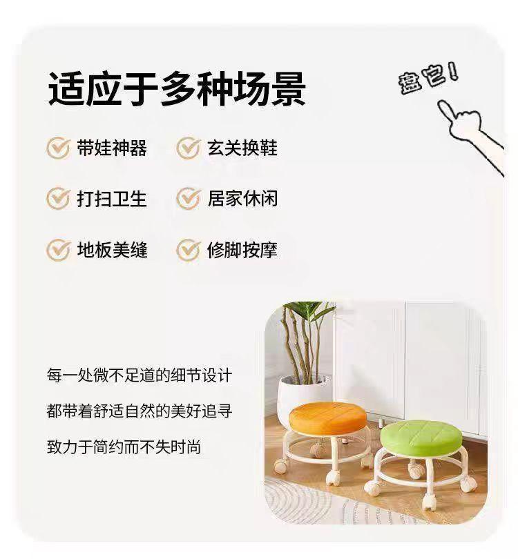 2025万向轮小凳子家用滑轮矮凳儿童板凳小椅子带轮移动圆凳沙发凳