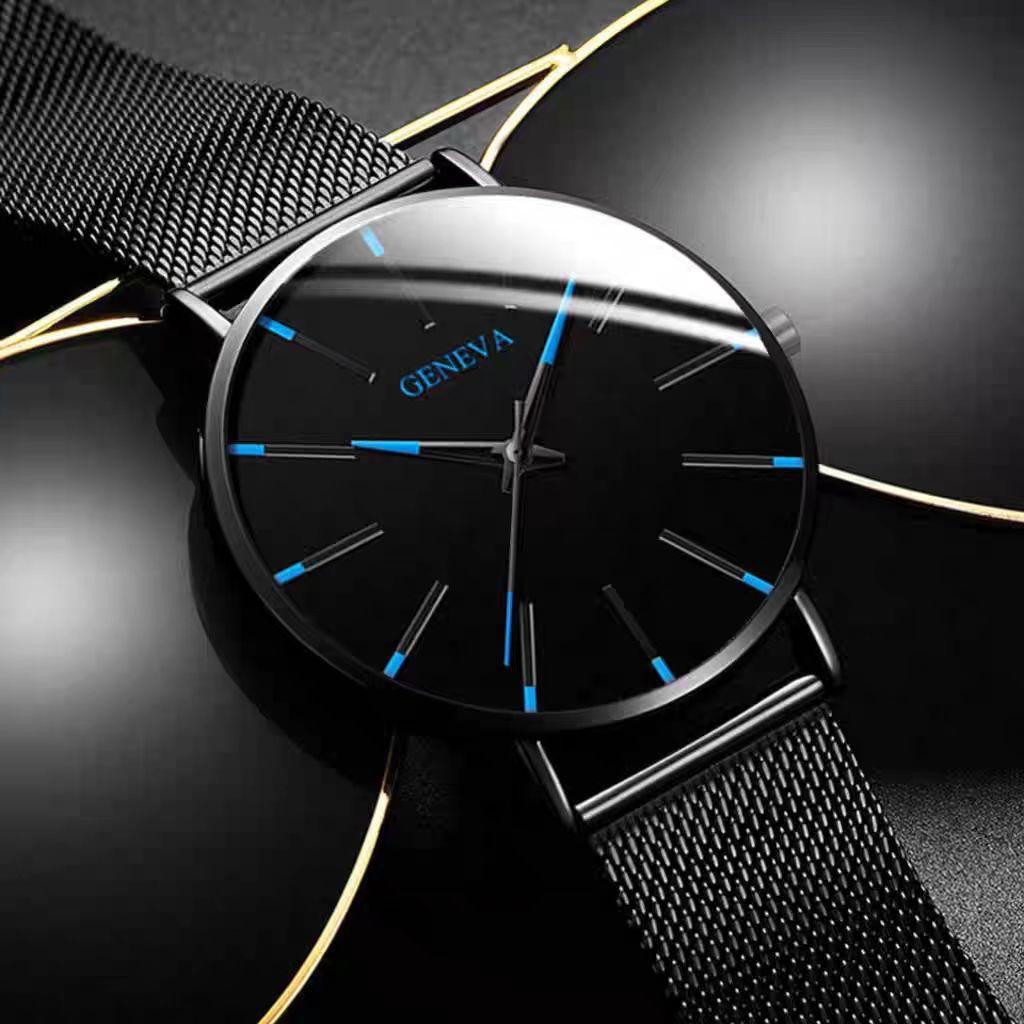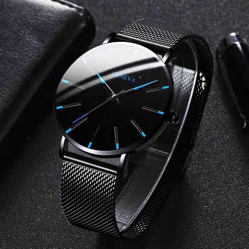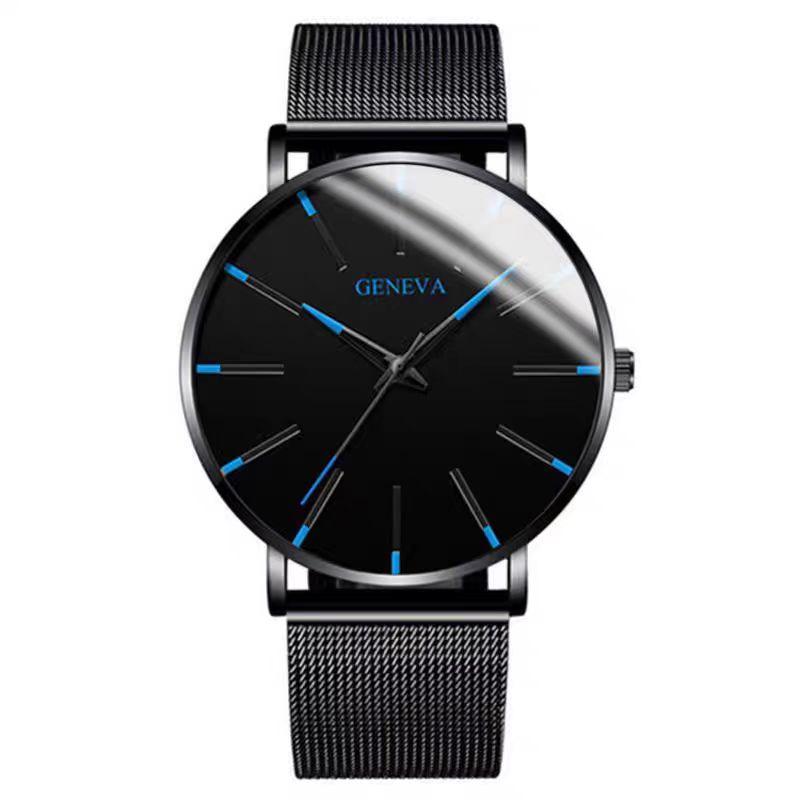 外贸热卖爆款时尚蓝针男士手表男表石英表网带款厂家现货一件代发